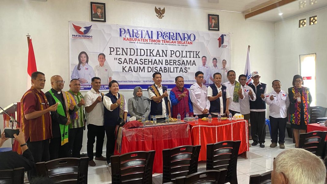 Ketua Divisi Sosdiklih, Parmas dan SDM KPU Kabupaten Timor Tengah Selatan, Fatimah dan didampingi Pejabat Fungsional, Maria Peni Maukari dan Staf Pelaksana, Welkis Y. Neolaka dan Marshem P. M. Siahaan, hadir sebagai narasumber pada kegiatan pendidikan politik "sarasehan bersama kaum disabilitas" di Sekretariat DPD Partai Perindo Kabupaten TTS, Kamis (29/01/2026). Kegiatan ini diselenggarakan DPD Partai Perindo Kabupaten TTS dan dibuka resmi Bupati Kabupaten TTS, Eduard Markus Lioe. Fatimah menyampaikan KPU dalam menyelenggarakan pemilu memegang teguh prinsip pemilu inklusif dan non diskriminatif. " Saudara-Saudaraku sebagai pemilih difabel mempunyai hak yang sama untuk dipilih dan memilih. Basodara semua bisa memilih ruang partisipasi baik sebagai peserta pemilu, penyelenggara, maupun pemilih, "imbuhnya. Lebih lanjut ia menguraikan pentingnya data pemilih disabilitas untuk menentukan layanan dan aksesbilitas TPS, menghindari kehilangan hak pilih dan perencanaan logistik pemilu inklusif. Dalam kesempatan ini, ia mengajak peserta kegiatan agar menjadi pemilih cerdas, kritis dan rasional dengan melihat rekam jejak calon, visi misi dan program kerja. Peserta kegiatan begitu antusias menyimak, memberikan tanggapan dan bahkan masukan untuk KPU Kabupaten TTS dalam meningkatkan pelayanan publik terkhusus bagi kaum disabilitas. Sarasehan ini turut dihadiri Kesbangpol Kabupaten TTS, Bawaslu Kabupaten TTS, DPC Perindo, Kader Partai Perindo dan Ketua Komite Penyandang Disabilitas (KIPDA) TTS dan Anggota. ....