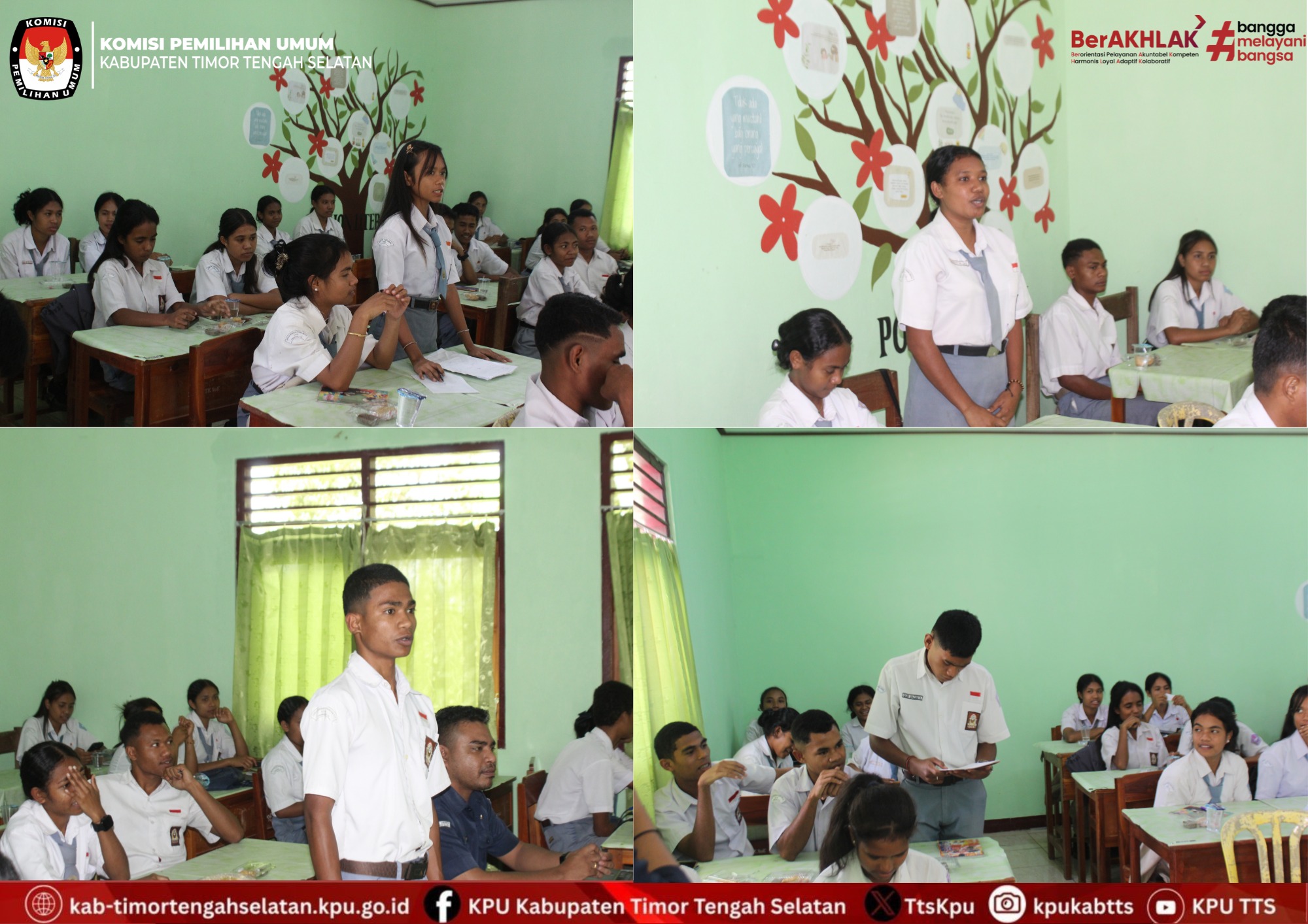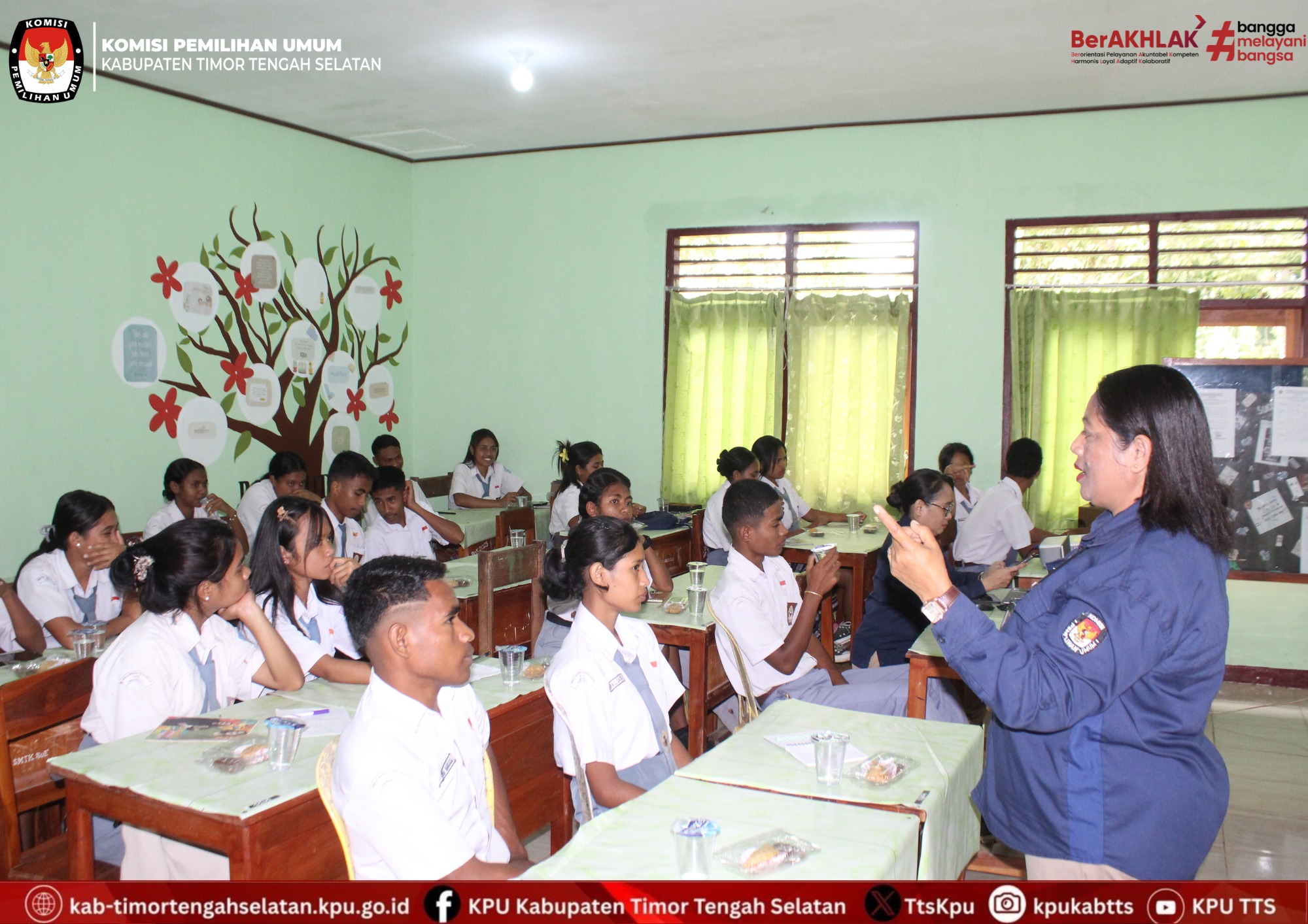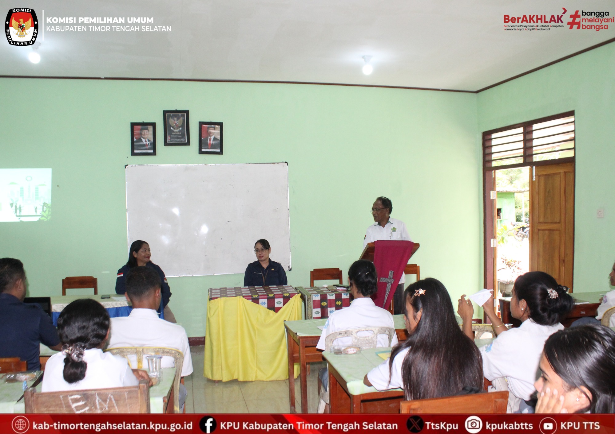 Sebagai langkah nyata dalam menyiapkan generasi muda sebagai pemilih yang cerdas, kritis dan berintegritas, KPU Kabupaten Timor Tengah Selatan (TTS) gencar melakukan pendidikan pemilih melalui program KPU Mengajar.