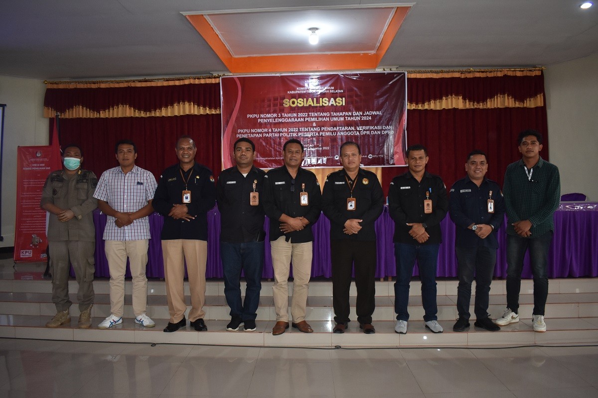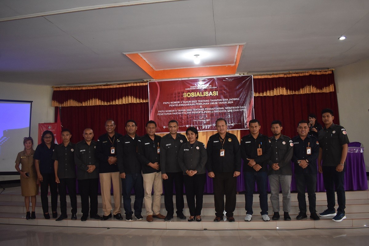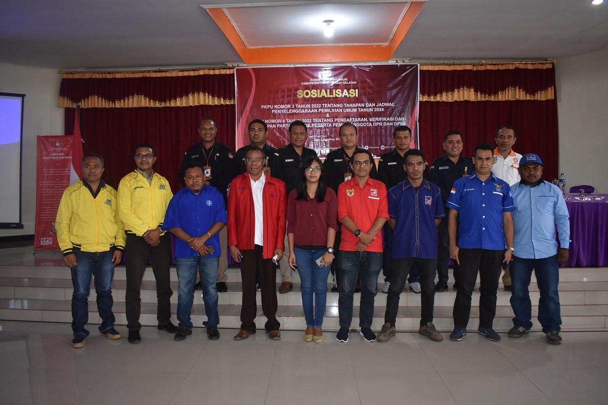 KPU Kab. TTS - Selasa, 2 Agustus 2022 Komisi Pemilihan Umum Kabupaten Timor Tengah Selatan melakukan kegiatan sosialisasi Peraturan KPU Nomor 3 tahun 2022 tentang jadwal dan tahapan penyelenggaraan Pemilu 2024 dan Peraturan KPU Nomor 4 tahun 2022 tentang pendaftaran, verifikasi dan penetapan partai politik peserta Pemilu DPR dan DPRD. Sosialisasi dilaksanakan di Hotel Blessing Soe dengan melibatkan peserta sebanyak 60 orang.