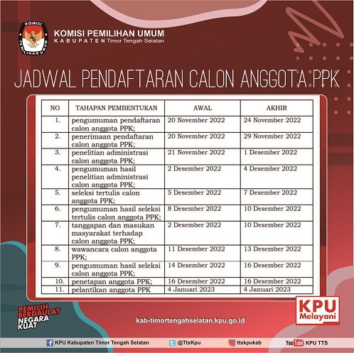 Pengumuman Seleksi Badan Ad Hoc Penyelenggara Pemilu PPK tingkat Kabupaten TTS
