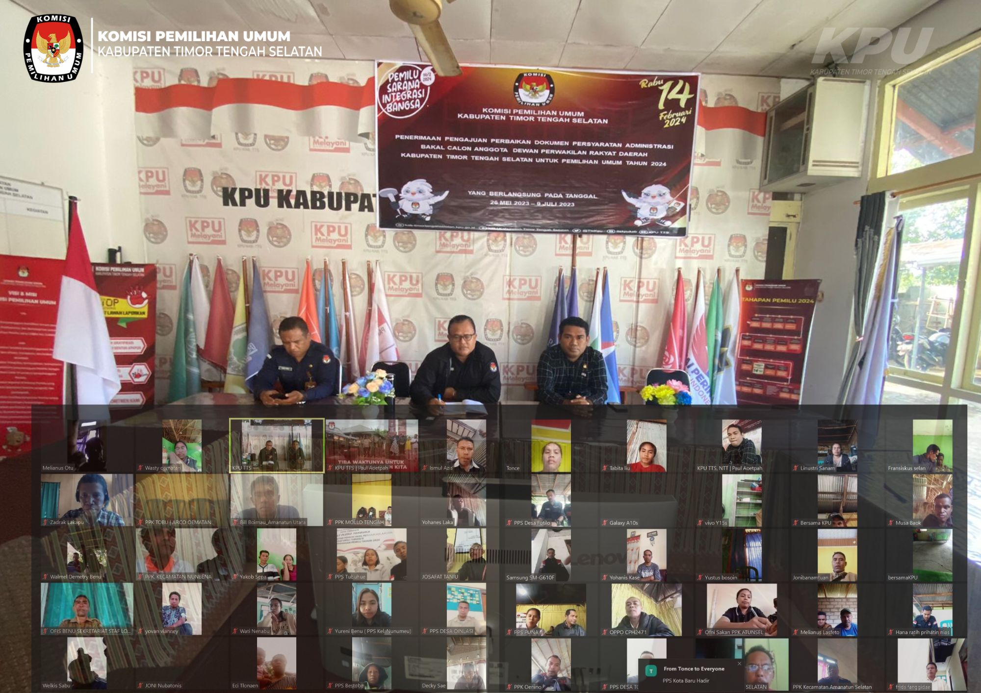 Tidak ada di wilayah terdaftar, bagaimana DPT Pemilu 2024 menggunakan hak pilihnya? Soe, KPU Kab. TTS. Pada Selasa, 18 Juli 2023, KPU kabupaten TTS menggelar Rapat koordinasi bersama seluruh jajaran badan Adhoc Pemilu 2024 tingkat Kab. TTS yang terdiri dari PPK, PPS maupun Sekretariat PPK dan PPS. Rapat koordinasi dimaksud mengusung agenda persiapan penyusunan Daftar Pemilih Tambahan (DPTb). Rakor dilaksanakan secara daring yang dihadiri oleh lebih dari 400 akun partisipan dari PPK dan PPS se-Kabupaten TTS. Rakor dipimpin oleh Ketua KPU TTS Matheus Antonius Krivo dan penyampaian materi DPTb oleh Ketua Divisi Rendatin Paul Aoetpah. Rapat juga dihadiri oleh Kasubag Rendatin KPU TTS Agusthinus Kabu, Operator Sidalih Yuven Neolaka, serta PPK dan PPS yg tersebar di 32 Kecamatan dan 278 Desa/Kelurahan. “Rakor ini membahas khusus tentang DPTb yakni daftar pemilih yang berisikan daftar pemilih yang telah terdaftar dalam DPT di suatu TPS, namun karena keadaan tertentu pemilih tersebut tidak dapat menggunakan haknya untuk memilih di TPS dimana yang bersangkutan terdaftar dan akan memberikan suara di TPS lain. Terdapat ketentuan pengajuan DPTb yakni dibatasi minimal 30 hari sebelum Pemilu 2024” Ujar Paul dalam materi yang disampaikan. Peserta yang hadir antusias bertanya tentang mekanisme penyusunan DPTb. Terdapat pertanyaan dari PPS Desa Noebesa tentang keluarga yang dari Kupang, sudah pindah ke Noebesa sudah 1 tahun, “Keluarga ini sudah dalam proses mutasi, apa perlu masuk DPTb?” tanya Mell. Dari PPS Benlutu yakni Ibu Adolvina juga mengkonfirmasi pemilih yang sudah pindah dari Benlutu ke Amanuban Tengah. Hal yang sama juga diutarakan oleh Ketua PPK Mollo Barat Marsel Tapenu tentang pemilih Mollo Barat yang sudah pindah memilih. Informasi tambahan juga disampaikan oleh Kadiv Rendatin Paul Aoetpah setelah mendapat pertanyaan tentang pemilih yang sudah TMS karena meninggal. Pertanyaan diajukan oleh Ketua PPK Kuatnana Paul Andreas Weni. “Diinformasikan untuk penyelenggara PPS dan PPK menandai pemilih dimaksud untuk turut dilaporkan pada KPU bersamaan dengan laporan DPTb setiap bulannya” kata Paul. Jika tidak sedang berada di wilayah terdafar sebagaimana yang diumukan di DPT (cekdptonline.kpu.go.id), ada mekanisme DPTb. Seseorang yang sudah terdata dalam DPT namun pemilih dimaksud yang telah terdaftar dalam DPT di suatu TPS karena keadaan tertentu tidak dapat menggunakan haknya untuk memilih di TPS dimana yang bersangkutan terdaftar maka, ada mekanisme pindah memilih yang dinamakan DPTb. Ketentuan Pindah Memilih Pemilih dapat mengurus dokumen pindah memilih selambat-lambatnya 30 hari sebelum pemungutan suara, yaitu pada tanggal 15 Januari 2024 dengan keadaan tetentu sebagai berikut: Menjalankan tugas di tempat lain pada saat hari pemungutan suara; Menjalani rawat inap di fasilitas pelayanan kesehatan dan keluarga yang mendampingi; Penyandang disabilitas yang menjalani perawatan di panti social atau panti rehabilitasi; Menjalani rehabilitasi narkoba; Menjadi tahanan di rumah tahanan atau Lembaga pemasyarakatan, atau terpidana yang sedang menjalani hukuman penjara atau kurungan; Tugas belajar/menempuh Pendidikan menengah atau tinggi; Pindah domisili; Tertimpa bencana alam; dan/atau Berkerja di luar domisilinya Namun juga ada ketentuan pindah memilih sebagaimana diatur dalam Putusan MK Nomor 20/PUU-XVII/2019 setelah tanggal 15 Januari 2024 hingga selambat-lambatnya 7 (tujuh) hari sebelum hari pemungutan suara, yaitu pada tanggal 7 Februari 2024 pemilih dapat mengurus pindah memilih dengan ketentuan tertentu sebagai berikut: Pemilih yang sakit Pemilih yang tertimpa bencana Pemilih yang menjadi tahanan Pemilih yang menjalankan tugas saat pemungutan suara Pemilih yang akan melakukan pindah memilih dapat langsung datang ke KPU Kabupaten TTS atau PPK atau PPS pada daerah asal maupun daerah tujuan. Jajaran KPU yang dimaksud dapat melayani pemilih yang akan pindah memilih setelah menerima dan melakukan verifikasi atas dokumen kependudukan dan dokumen bukti pendukung persyaratan untuk pindah memilih. Pindah memilih juga akan berdampak pada jumlah surat suara yang digunakan jika pindah memilih keluar dari wilayah asal ke Dapil lain sesuai tingkatan pemilihan. Pemilih yang pindah memilih harus mengantongi Surat Pemberitahuan yakni Model A-Surat Pindah Memilih dari PPS, PPK atau KPU Kabupaten/Kota. Kontributor: Paul Aoetpah