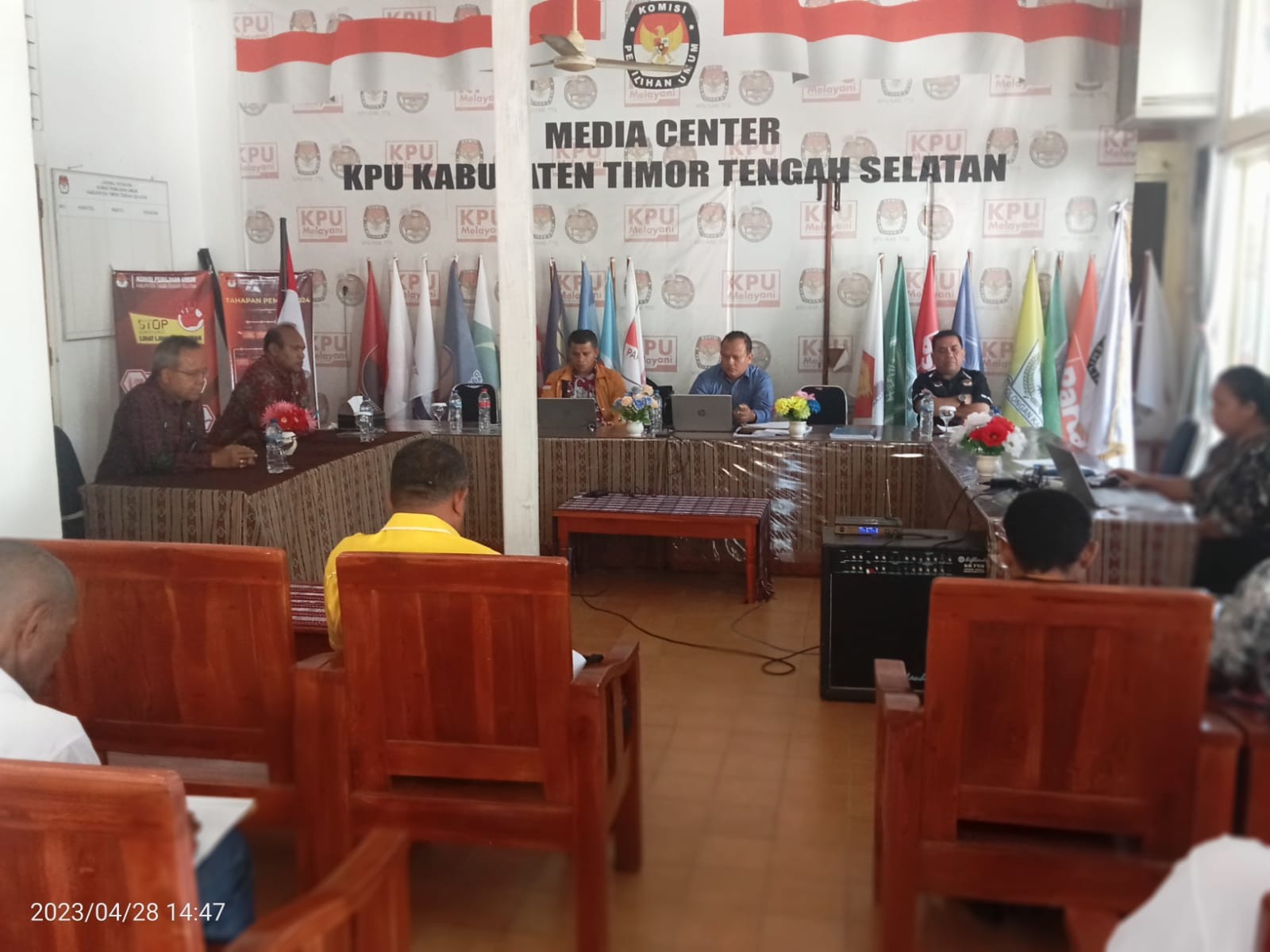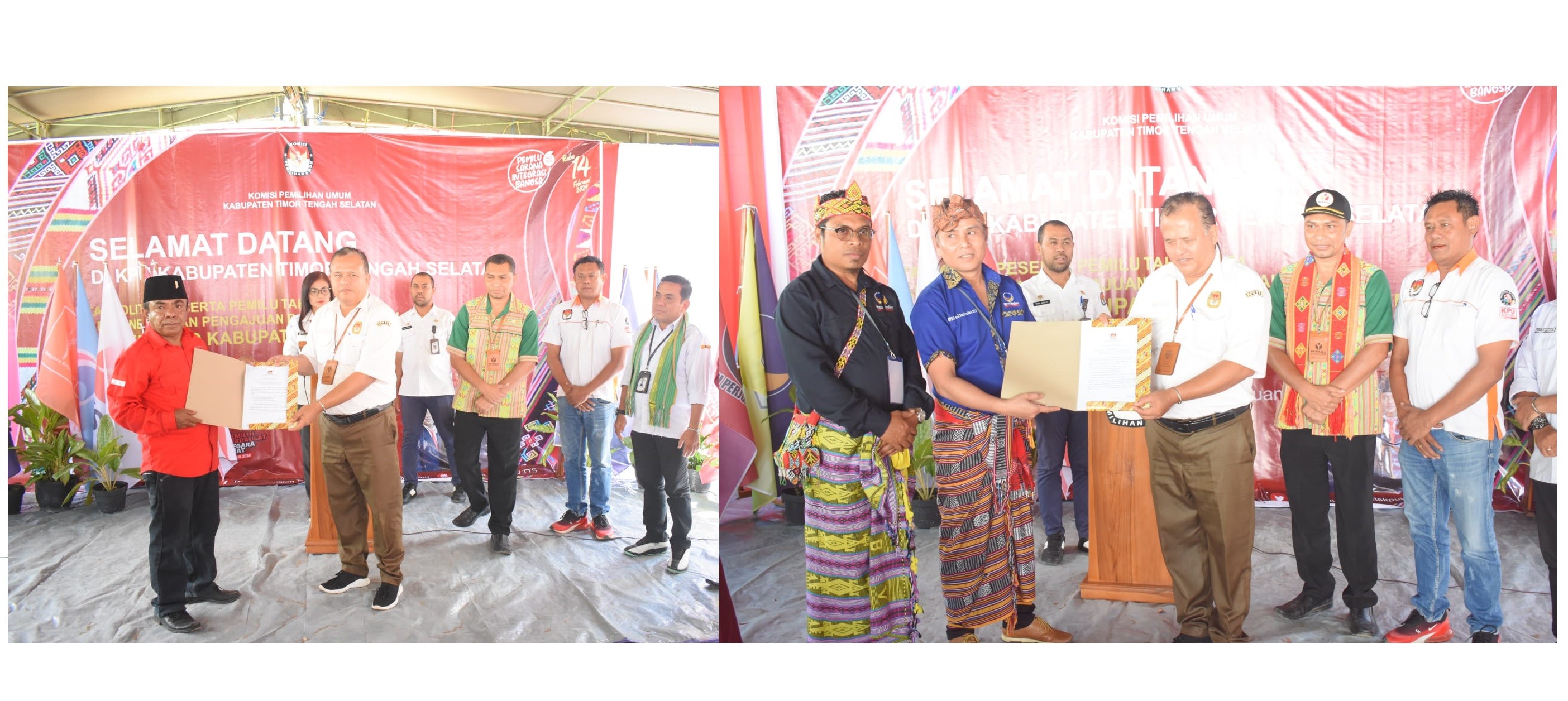 SoE, KPU Kab. TTS. Pada hari ke 11 pembukaan Pengajuan Dokumen Bakal Calon Anggota Legislatif (Bacaleg) oleh Komisi Pemilihan Umum KPU kabupaten TTS, pada tanggal 11 Mei 2023 Partai Demokrasi Indonesia Perjuangan dan Partai Nasdem datang mendaftar ke Kantor KPU TTS, menyusul Partai Hanura yang lebih dahulu mendaftr pada tanggal 10 Mei 2023. Rombongan PDIP dipimpin langsung oleh Ketua DPC, Deki Liu, datang tepat pada pukul 10:00 Wita, dan disamput di Pintu Gerbang Oleh Sekertaris KPU TTS, Marsel D.I Taneo didampingi oleh 4 Kasubagnya. Sedangkan Partai Nasdem Datang pada pukul 14: 27 yang dipimpin langsung oleh Ketua Badan Pemenagan Pemilu (Bapilu) Partai Nasdem, Hendrikus Babys dan Sekertaris Partai Nasdem Kabupaten TTS.Sedangkan Ketua DPD Partai Nasdem, Jhoni Armi Konay berhalangan hadir. Selanjutnya rombongan sudah ditunggu oleh Ketua KPU TTS, Matheus Antonius Krivo dan Para komisioner Yaitu Julius E. Litelnoni, Nixon R. Balla dan Paul Aoetpah untuk acara seremoni penyerahan dokumen. Dalam Sambutannya Ketua KPU TTS, menyampaikan beberapa informasi penting diantaranya penyampaian tahapan pengajuan nama-nama Bacaleg yang akan di teliti oleh pihak KPU TTS. “Dokumen yang kami terima ini akan kami teliti, dan jika terjadi kekurangan kami akan menghubungi Partai Politik untuk memperbaikinya” Kata Krivo. Setelah acara seremonial peneriman dan penyerahan dokumen, tahapan selanjutnya adalah pencocokan dan penelitian dukumen hard dengan aplikasi Sistem Informasi Pencalonan (Silon) oleh pihak KPU TTS dan Liasion Officer (LO) PDIP dan Partai Nasdem, disaksikan juga oleh Bawaslu TTS. Setelah berproses lebih kurang satu jam maka KPU TTS menyatakan berkas pengajuan bakal calon anggota DPRD TTS oleh PDIP dan Partai Nasdem, dinyatakan lengkap dan diterima. Hal ini dituangkan dalam Berita Acara yang diserahkan oleh Ketua KPU TTS disaksikan oleh para komisioner kepada Ketua DPC Partai Hanura dan Bawaslu TTS. Kontributor: Ayub Victor Kollo