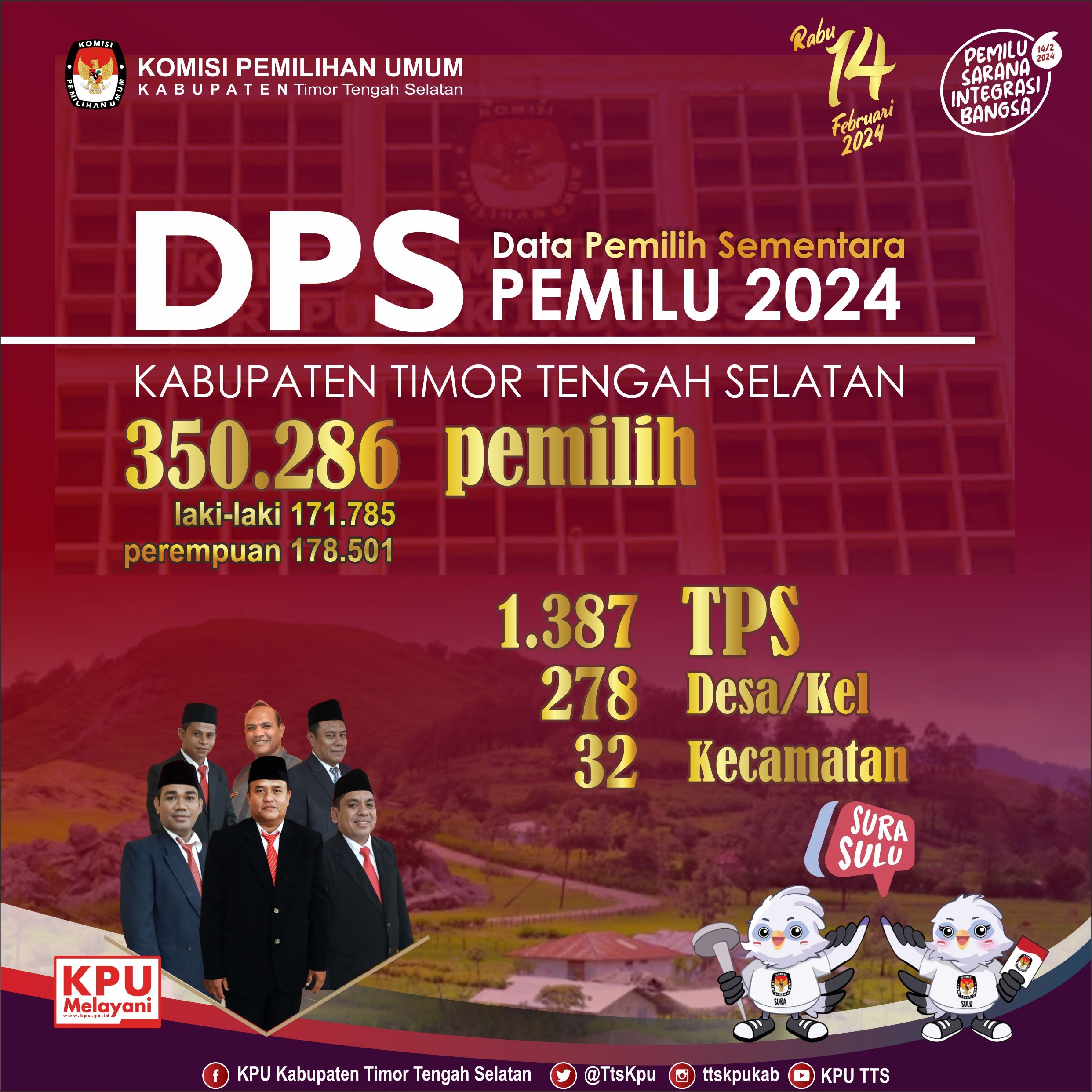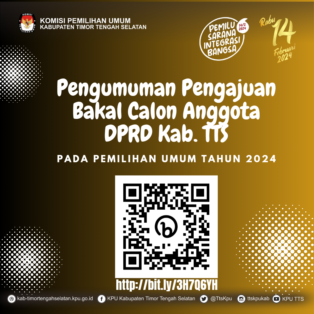 Pengumuman Daftar Pemilih Sementara (DPS) Pemilu 2024 Kabupaten Timor Tengah Selatan: KOTA SOE: https://drive.google.com/drive/folders/1q4ASPna8Mg3EpMvyrRVPushRgHdgKY23?usp=share_link MOLLO SELATAN: https://drive.google.com/drive/folders/1f93YfLne2jBwgmPFm-WLSZH4QOv_IqiC MOLLO UTARA: https://drive.google.com/drive/folders/1Wc0MohyuRuYHmzA9MCSCENOSVwTsfcGs AMANUBAN TIMUR: https://drive.google.com/drive/folders/1KzerqcuTUJoadSXL4XgRcZxA8KFlMWD6 AMANUBAN TENGAH: https://drive.google.com/drive/folders/1TUeqdSk3TmbaCwuKZ-awX8Ie5S-MvvE4 AMANUBAN SELATAN: https://drive.google.com/drive/folders/1myP8TA8CDTtE9e638Ta7ENbYx6Rbi1-q AMANUBAN BARAT: https://drive.google.com/drive/folders/1dVKtu8GTYxxHwgPEE5rtJ34ZRexqlSN8 AMANATUN UTARA: https://drive.google.com/drive/folders/131alv4134tUzPBurOf-P0cZRqmcEzLwL AMANATUN SELATAN: https://drive.google.com/drive/folders/1WAizUCXVhNLpD9b3Rv_43JsSSLnFWTrt KI’E: https://drive.google.com/drive/folders/1j9LI-AQesyrCecwkC9tpKHY4AixA5sXI KUANFATU: https://drive.google.com/drive/folders/1gl45tcfcxER2WU-YHiedeht4vSRoEAES FATUMNASI: https://drive.google.com/drive/folders/1qYmpuMwD0Rq7m1OpJDq06xWheT7346jU POLEN: https://drive.google.com/drive/folders/130dd6eGPtiFfx-YlCzXJqNxRJpoVF9gT BATU PUTIH: https://drive.google.com/drive/folders/1rQz7a3xBl5yB07x9llDurO-JOMiRXw6l BOKING: https://drive.google.com/drive/folders/10ov0aMfeJ2O6nnSgW-YK5PUHmf3jwTDj TOIANAS: https://drive.google.com/drive/folders/1Cr_tX2ayfpXHkuGAtox3h1UNUZ5d93nj NUNKOLO: https://drive.google.com/drive/folders/1pWtn7jBO5_CDdzsDNSqieo_JhevMgu-B OENINO: https://drive.google.com/drive/folders/1Zs9TEbiyCzXcU54OnetvmvWLI6Jk7ScT KOLBANO: https://drive.google.com/drive/folders/1aTCQET0Wq4oi-tkrHXFNUz6dmWlda__m KOT OLIN: https://drive.google.com/drive/folders/1O5ZpwZ_YR22Bh_-ufcayJBZWlO9uvWZM KUALIN: https://drive.google.com/drive/folders/1eO-GwN4MH2M4Xn11AxDnLE6noek1MiRB MOLLO BARAT: https://drive.google.com/drive/folders/1ZtYWTW0v4P7SdqL3_3rzMYYQTgw2yX3j KOK BAUN: https://drive.google.com/drive/folders/11AdTWMbJyIB6BjlZixGve0F8m-NFD9-N NOEBANA: https://drive.google.com/drive/folders/1zOAS5ZZcMFWrZkjgDaqp02peMo_6cvxO SANTIAN: https://drive.google.com/drive/folders/1N36wDe1lEHPz1ZaanAztnW3KzAxV8cm1 NOEBEBA: https://drive.google.com/drive/folders/18A3iMqXnJ7Jwvk5ew7xOVSNP5WSKT3a- KUATNANA: https://drive.google.com/drive/folders/155Ser0NLWtlpUTTRaPgCAcx89KIPxxCs FAUTMOLO: https://drive.google.com/drive/folders/1Xj7JWhBdoVEPtbJbnzeXLm3adqh6FUCt FATUKOPA: https://drive.google.com/drive/folders/1-snIwlWm7a1CF_Koj9QpPFhCOiv3NZVH MOLLO TENGAH: https://drive.google.com/drive/folders/1K_MtVmRfjn2dvR-OoFgBh-cNm-Ez6SzO TOBU: https://drive.google.com/drive/folders/1d4MKDh2s4mKLbX1YQLnZjVp_U4ElLFl7 NUNBENA: https://drive.google.com/drive/folders/1uisMKXOstMfzRxlDPnY7nX5dVPBGdkcr Sumber: Data KPU Kabupaten Timor Tengah Selatan Surat Keputusan KPU Kabupaten TTS Nomor 16 Tahun 2023