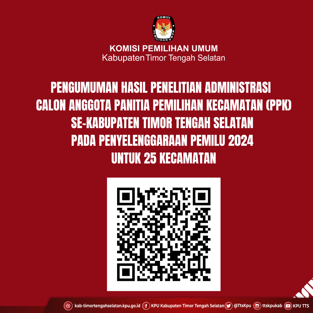 Pengumuman Hasil Penelitian Administrasi Calon Anggota PPK se-Kabupaten TTS pada Penyelenggaraan Pemilu 2024 untuk 25 dari 32 Kecamatan.