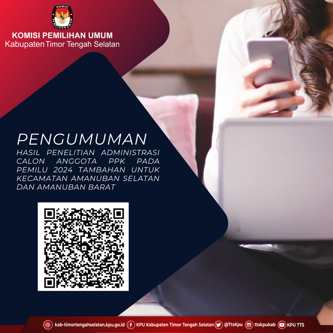 DOWNLOAD PENGUMUMAN HASIL PENELITIAN ADMINISTRASI CALON ANGGOTA PPK PADA PEMILU 2024 TAMBAHAN UNTUK KECAMATAN AMANUBAN SELATAN DAN AMANUBAN BARAT