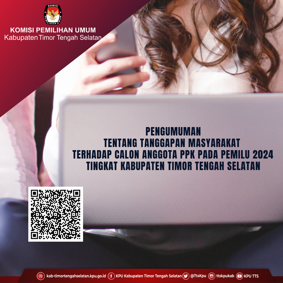 DOWNLOAD PENGUMUMAN TENTANG TANGGAPAN MASYARAKAT TERHADAP CALON ANGGOTA PPK PADA PEMILU 2024 TINGKAT KABUPATEN TIMOR TENGAH SELATAN