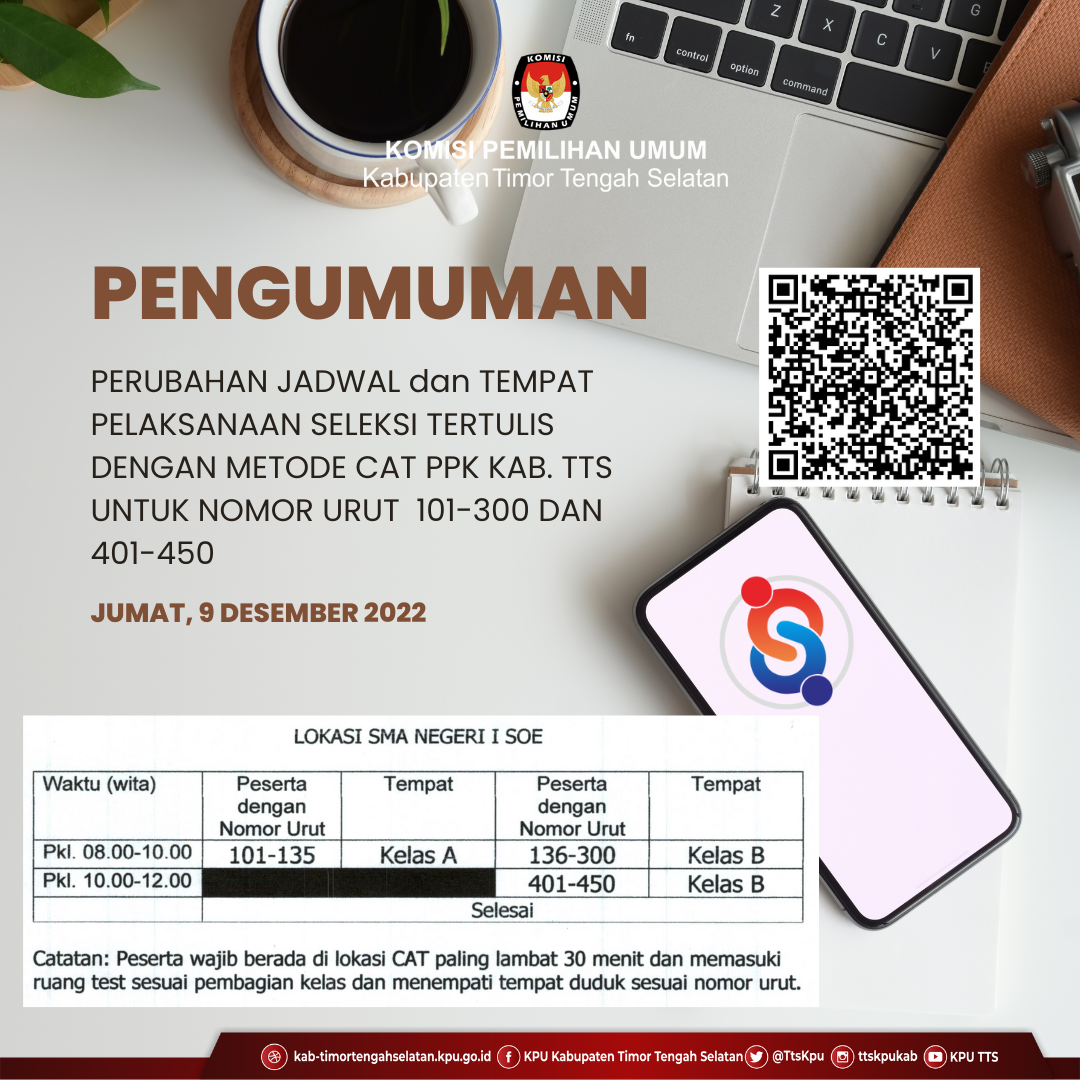 DOWNLOAD PENGUMUMAN PERUBAHAN JADWAL dan TEMPAT PELAKSANAAN SELEKSI TERTULIS DENGAN METODE CAT PPK KAB. TTS UNTUK NOMOR URUT 101-300 DAN 401-450